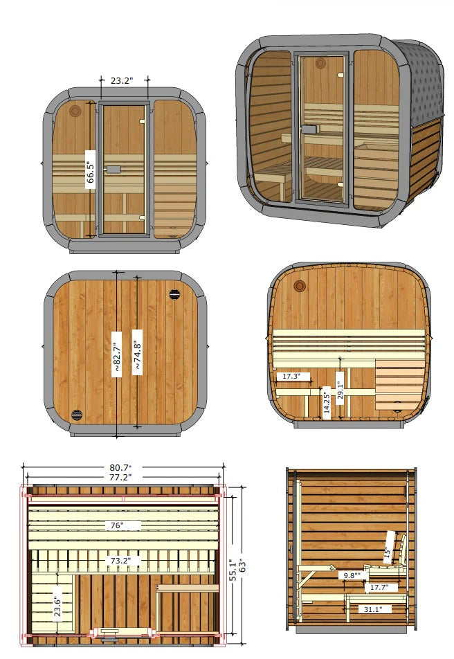 | Sauna Interior Dimensions | 77.2"W x 55.1"D x 74.8"H |