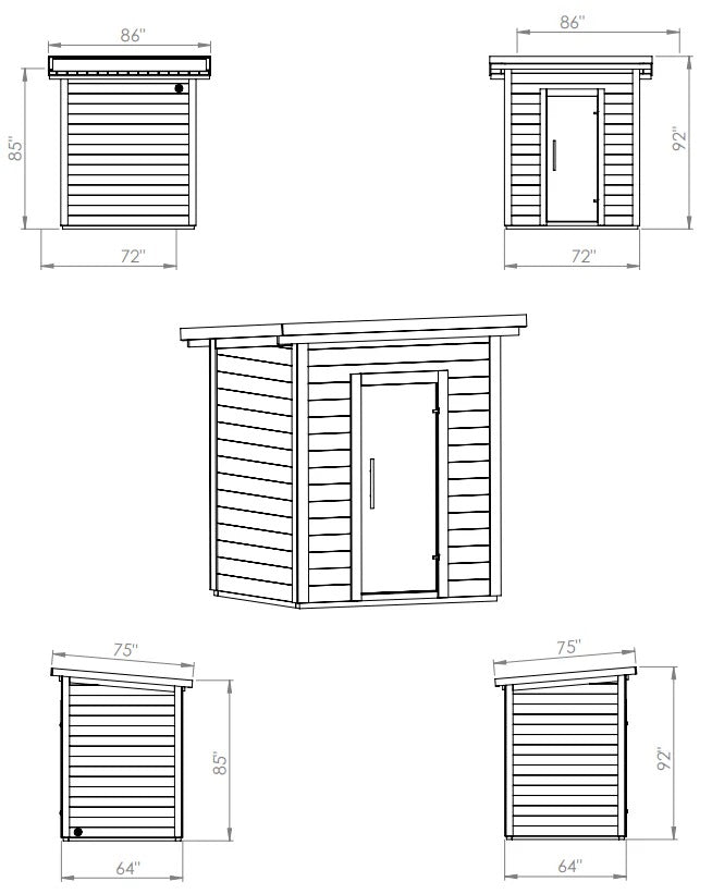 | Exterior Dimensions (Front) | 64"D x 72"W x 92"H |