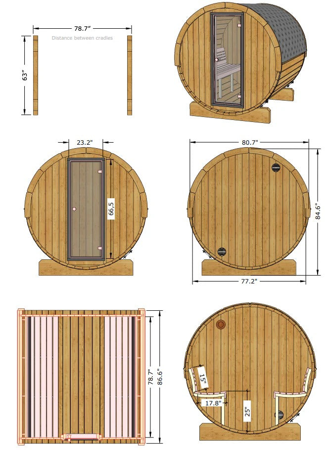 | Interior Dimensions | 78-1/2"L x 77"Diameter |